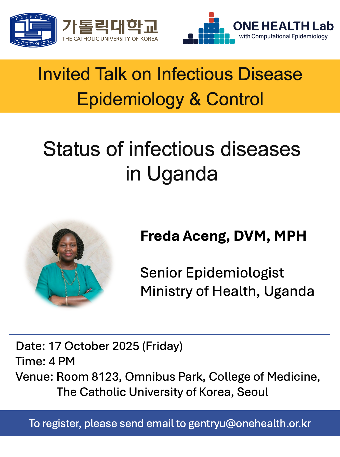 25 October 2024. Infectious Disease Epidemiology and Control, by Prof. June Young Chun (National Cancer Center), Dr. Achangwa Chiara (The Catholic Univ.), Prof. Eunha Shim (Soongsil Univ.), Dr. Sang-Eun Lee (KDCA), and Dr. Bryan Kim (KDCA)